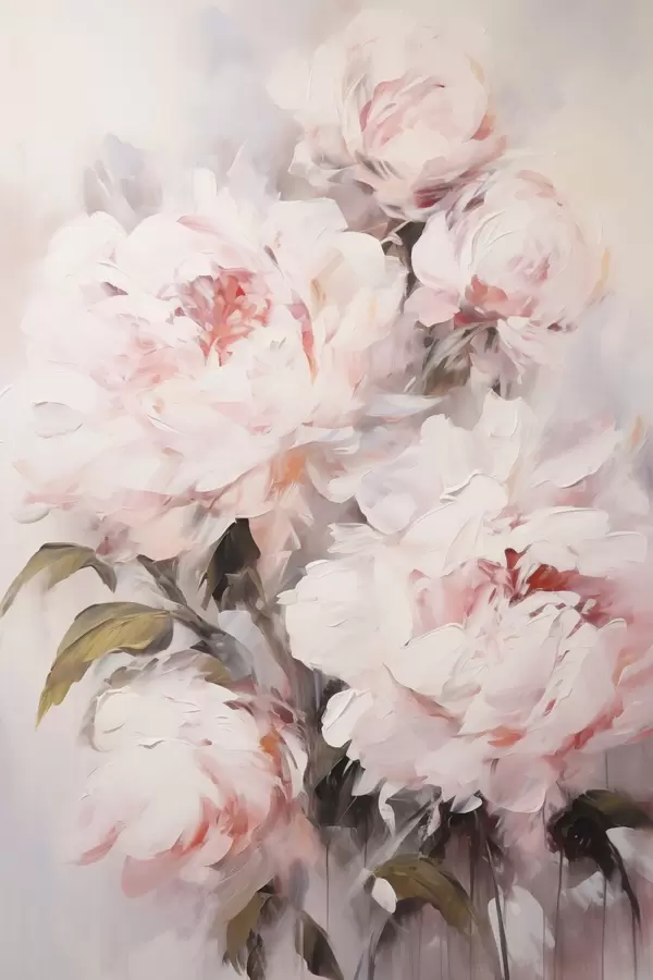 Poster Világos rózsaszín pünkösdi rózsák csokor zöld levelekkel, lágy ecsetvonásokkal, pasztell színekkel, világos háttérrel Nr f46294