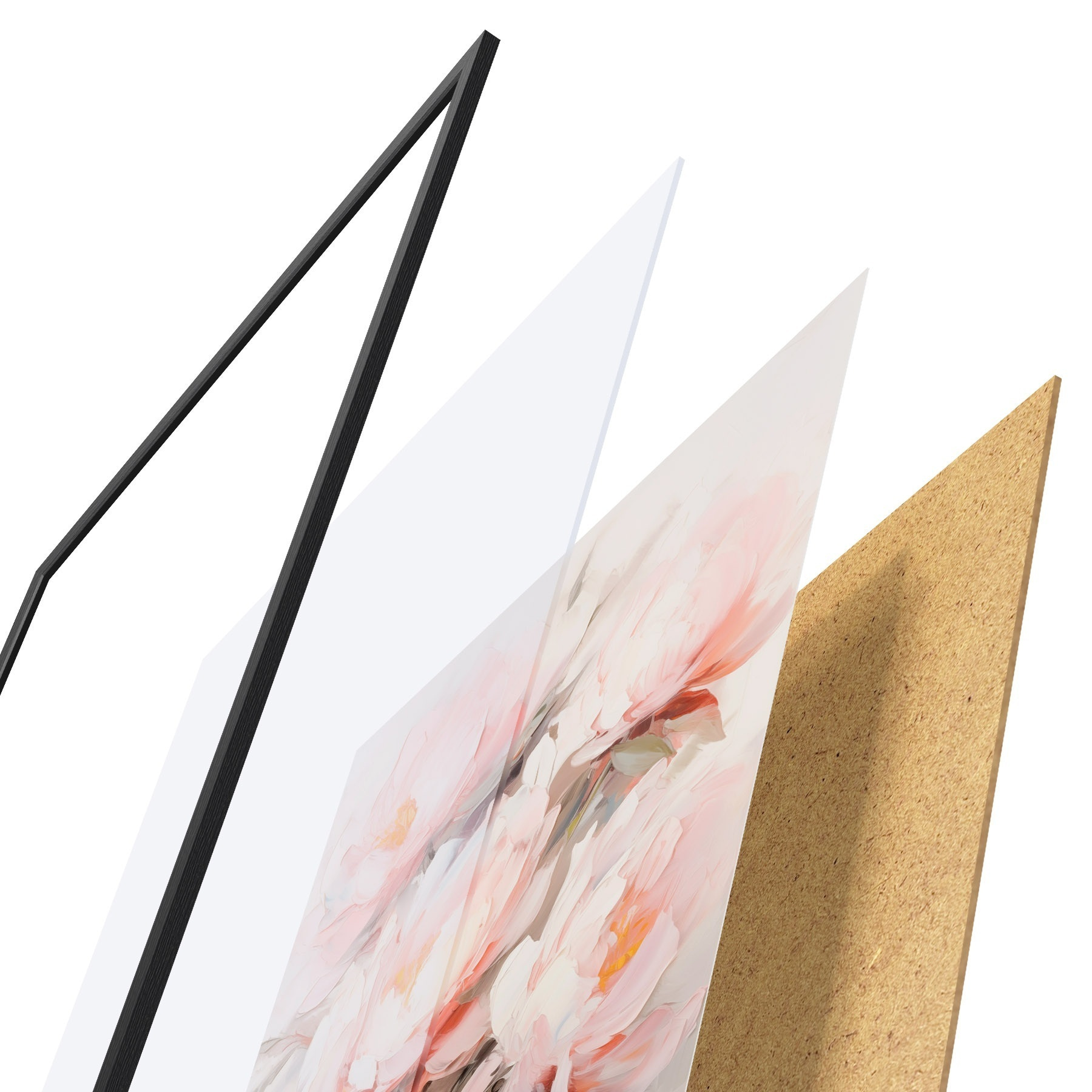 A poszter keretből, plexiből, nyomtatott képből és forgácslap hátlapból áll. A poszter a hátoldalon található rögzítőknek köszönhetően azonnal felakasztható a falra.