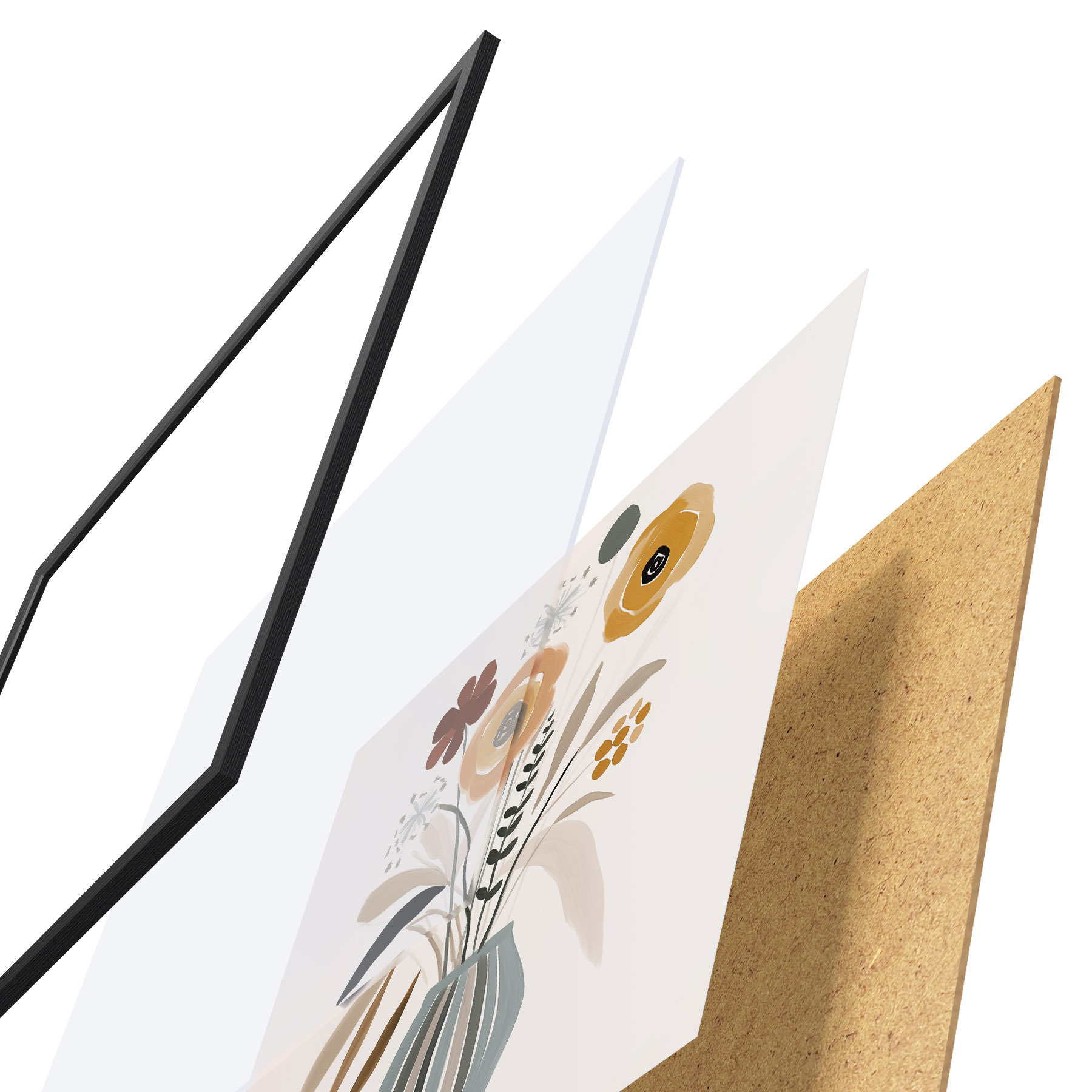 A poszter keretből, plexiből, nyomtatott képből és forgácslap hátlapból áll. A poszter a hátoldalon található rögzítőknek köszönhetően azonnal felakasztható a falra.