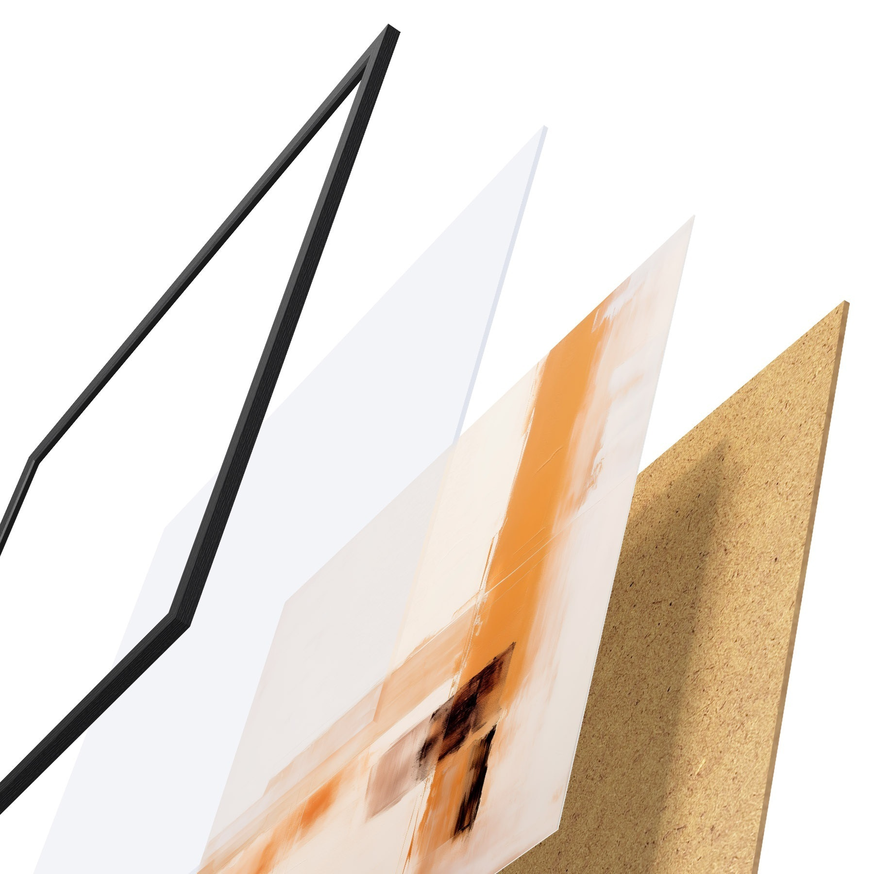 A poszter keretből, plexiből, nyomtatott képből és forgácslap hátlapból áll. A poszter a hátoldalon található rögzítőknek köszönhetően azonnal felakasztható a falra.