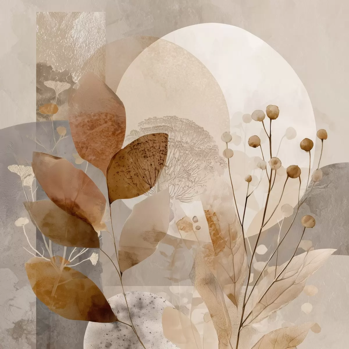 Poster Bézs és barna virágmintás Nr f46308
