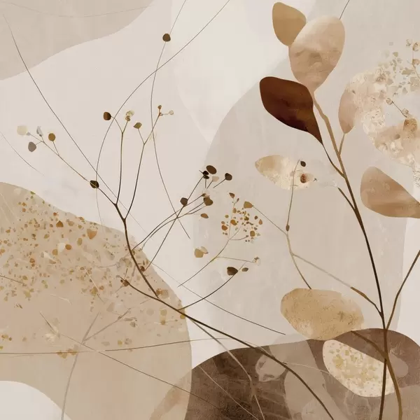 Poster Absztrakt formák és növényi motívumok bézs árnyalatokban Nr f46309