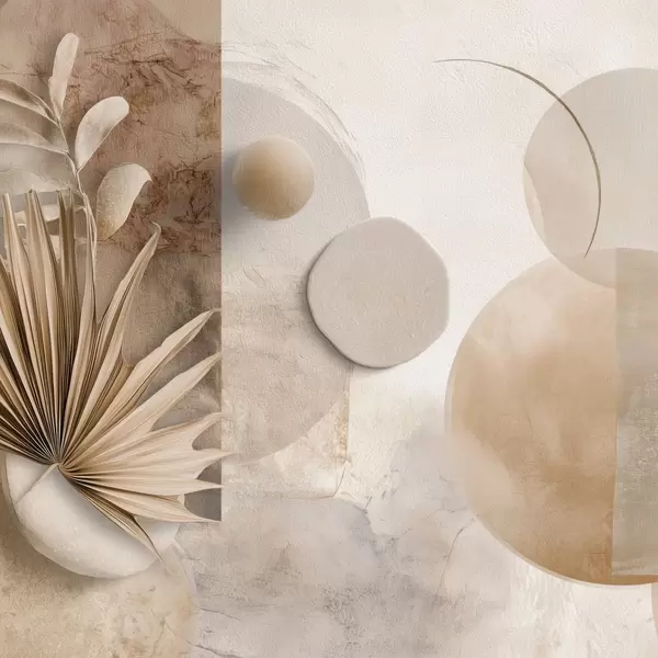 Plakát a sziklán Szárított pálmalevelek és 3D körök bézs árnyalatokban f46310