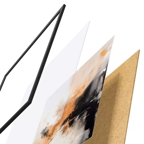 A poszter keretből, plexiből, nyomtatott képből és forgácslap hátlapból áll. A poszter a hátoldalon található rögzítőknek köszönhetően azonnal felakasztható a falra.
