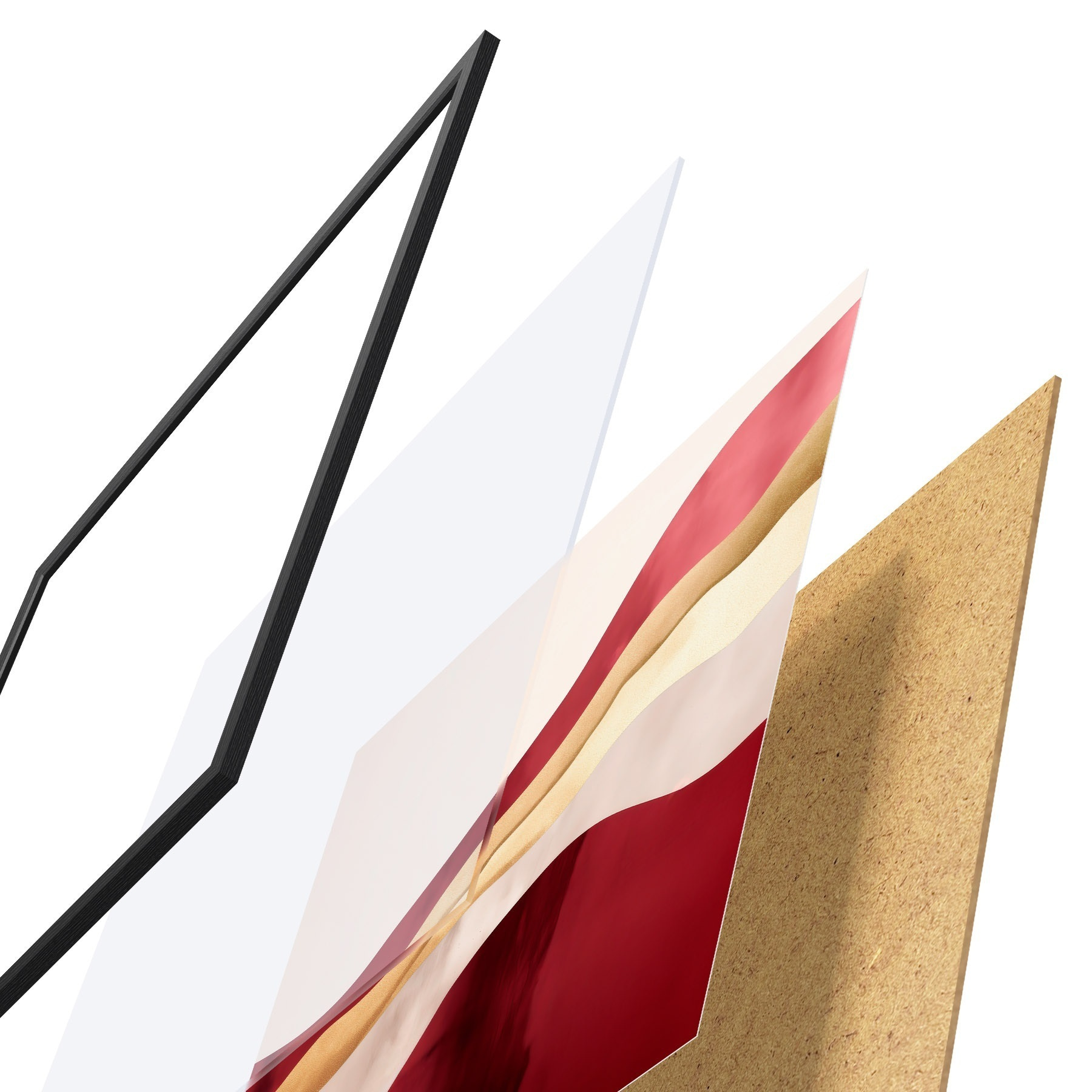 A poszter keretből, plexiből, nyomtatott képből és forgácslap hátlapból áll. A poszter a hátoldalon található rögzítőknek köszönhetően azonnal felakasztható a falra.