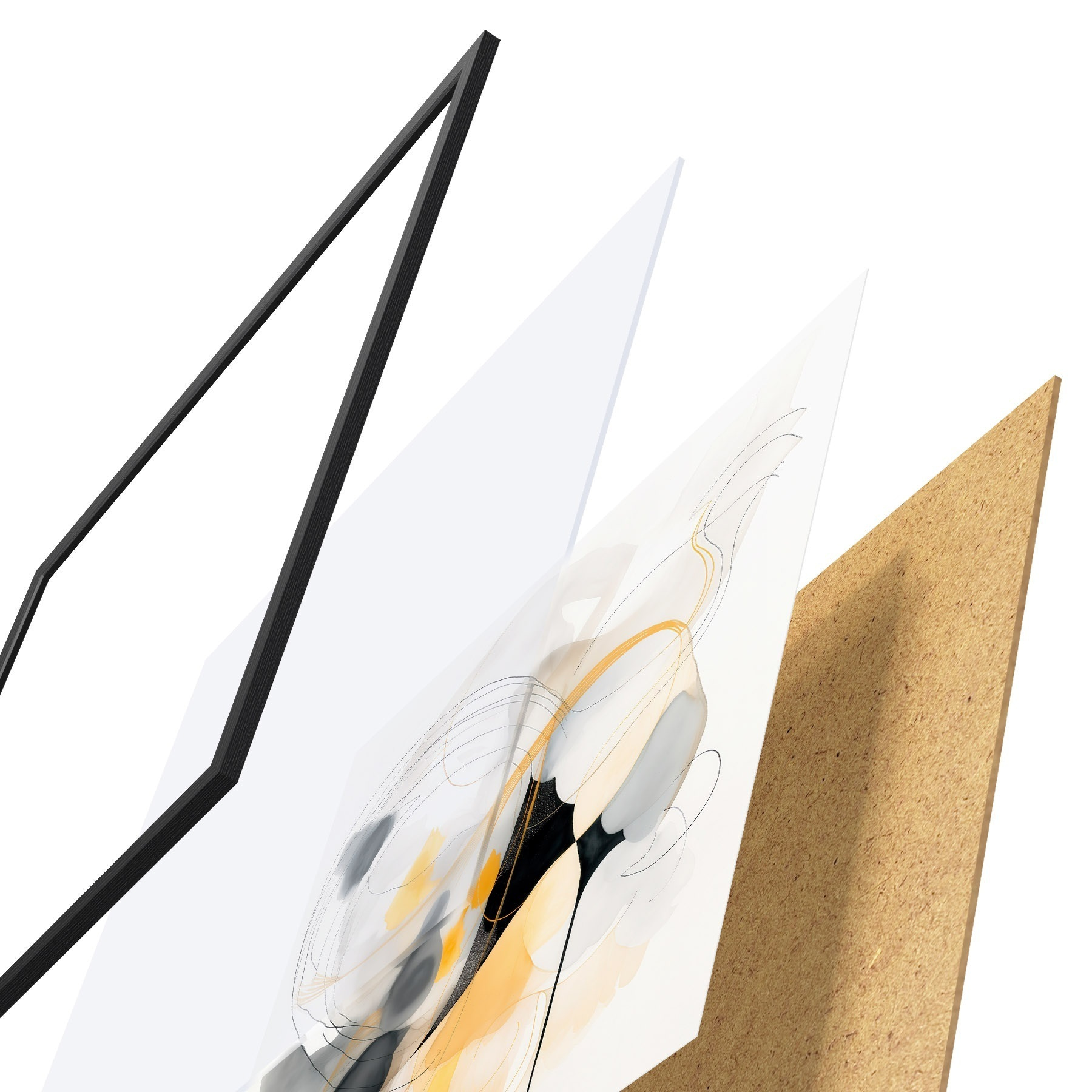 A poszter keretből, plexiből, nyomtatott képből és forgácslap hátlapból áll. A poszter a hátoldalon található rögzítőknek köszönhetően azonnal felakasztható a falra.