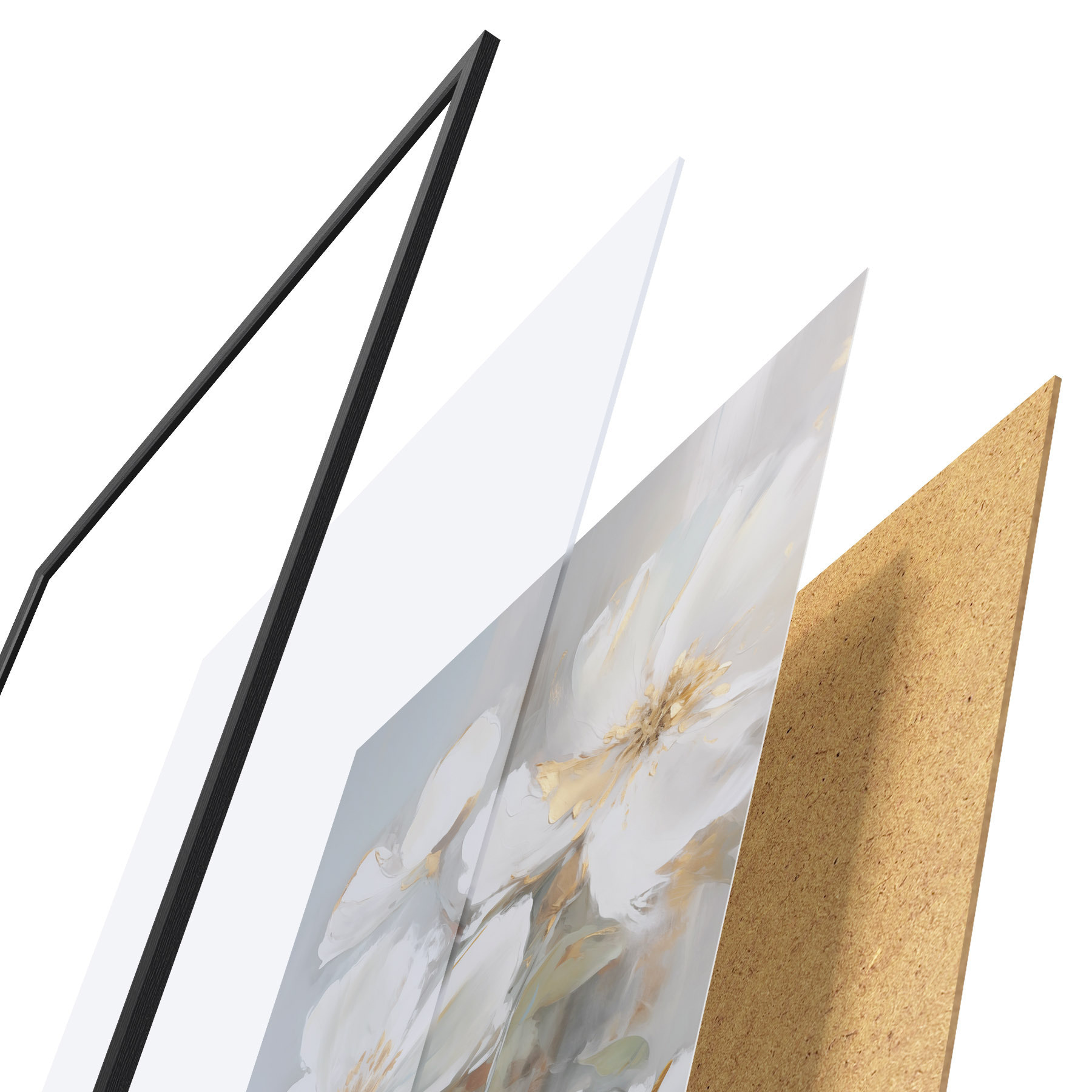 A poszter keretből, plexiből, nyomtatott képből és forgácslap hátlapból áll. A poszter a hátoldalon található rögzítőknek köszönhetően azonnal felakasztható a falra.