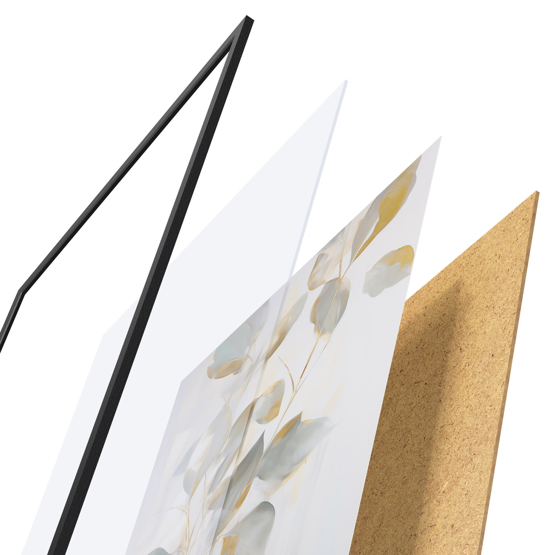 A poszter keretből, plexiből, nyomtatott képből és forgácslap hátlapból áll. A poszter a hátoldalon található rögzítőknek köszönhetően azonnal felakasztható a falra.