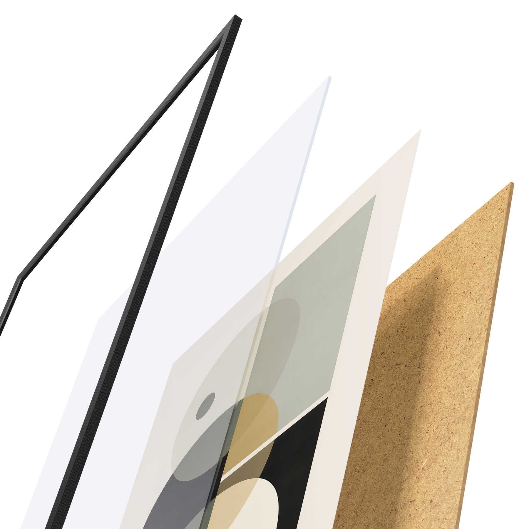 A poszter keretből, plexiből, nyomtatott képből és forgácslap hátlapból áll. A poszter a hátoldalon található rögzítőknek köszönhetően azonnal felakasztható a falra.