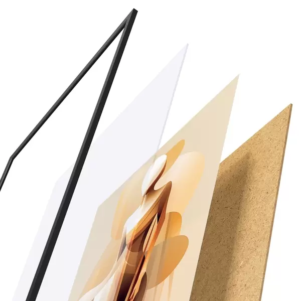A poszter keretből, plexiből, nyomtatott képből és forgácslap hátlapból áll. A poszter a hátoldalon található rögzítőknek köszönhetően azonnal felakasztható a falra.