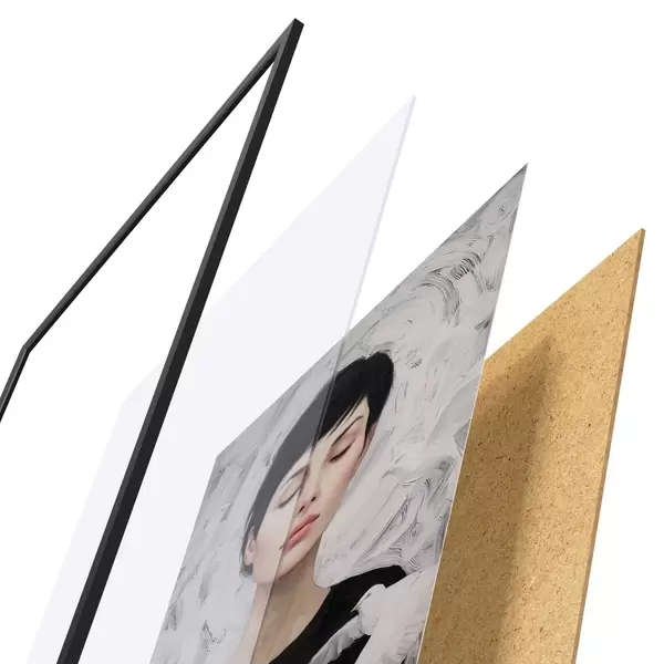 A poszter keretből, plexiből, nyomtatott képből és forgácslap hátlapból áll. A poszter a hátoldalon található rögzítőknek köszönhetően azonnal felakasztható a falra.