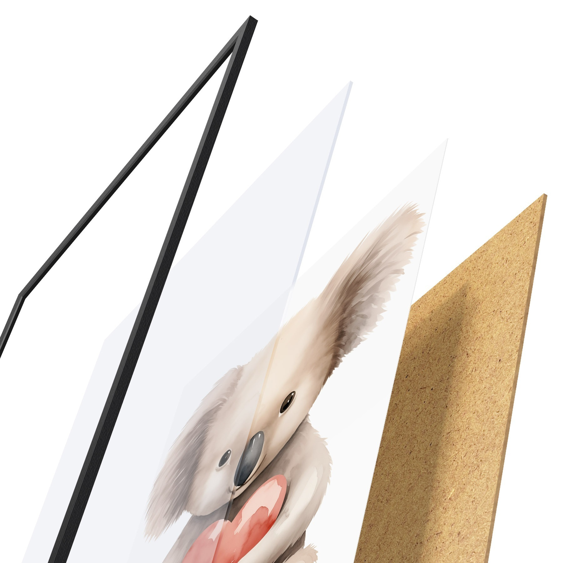A poszter keretből, plexiből, nyomtatott képből és forgácslap hátlapból áll. A poszter a hátoldalon található rögzítőknek köszönhetően azonnal felakasztható a falra.