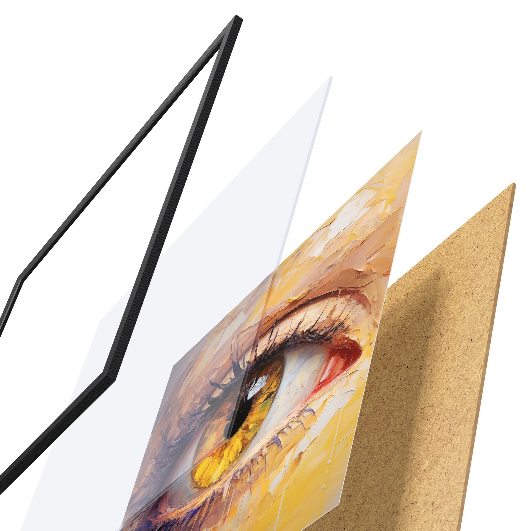A poszter keretből, plexiből, nyomtatott képből és forgácslap hátlapból áll. A poszter a hátoldalon található rögzítőknek köszönhetően azonnal felakasztható a falra.