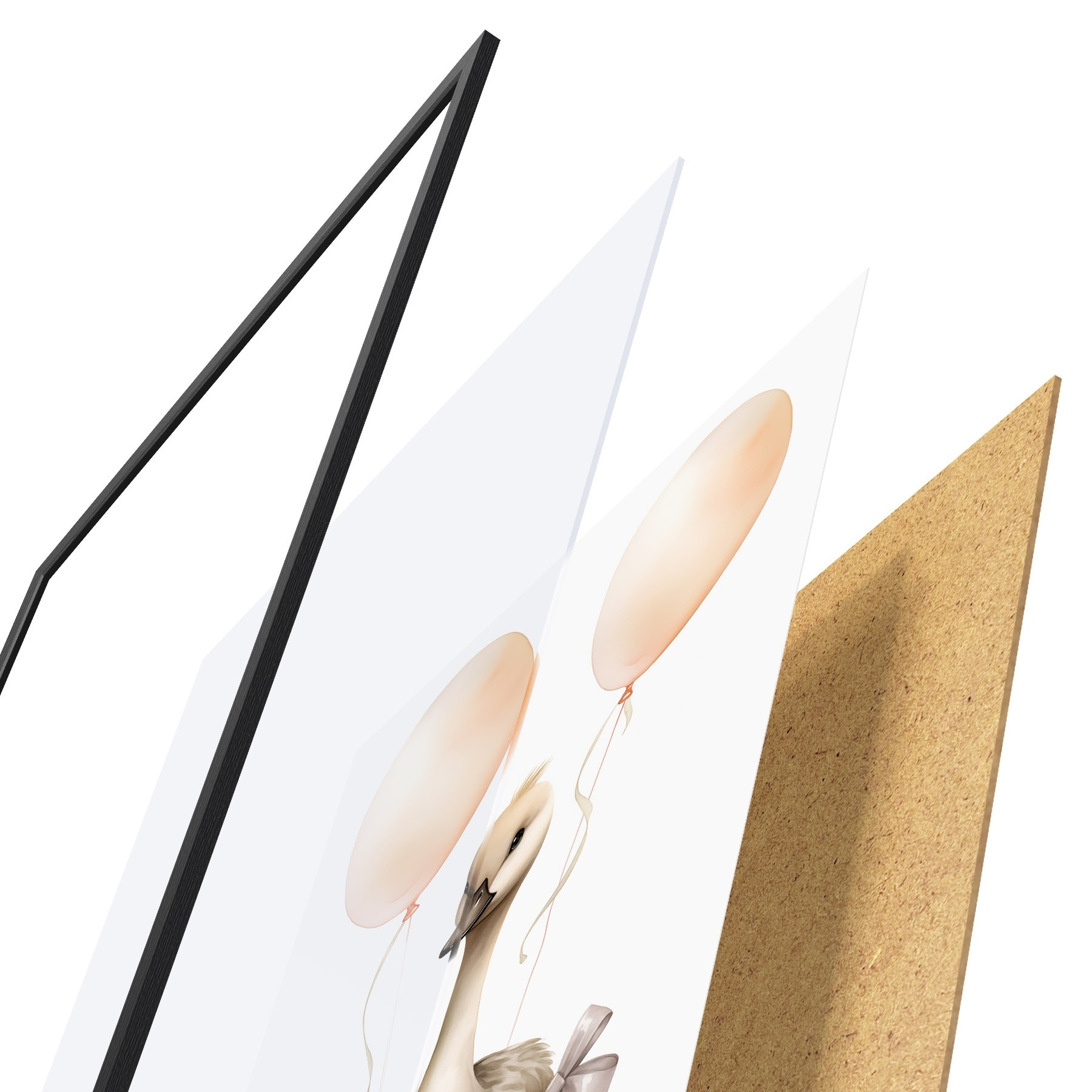 A poszter keretből, plexiből, nyomtatott képből és forgácslap hátlapból áll. A poszter a hátoldalon található rögzítőknek köszönhetően azonnal felakasztható a falra.