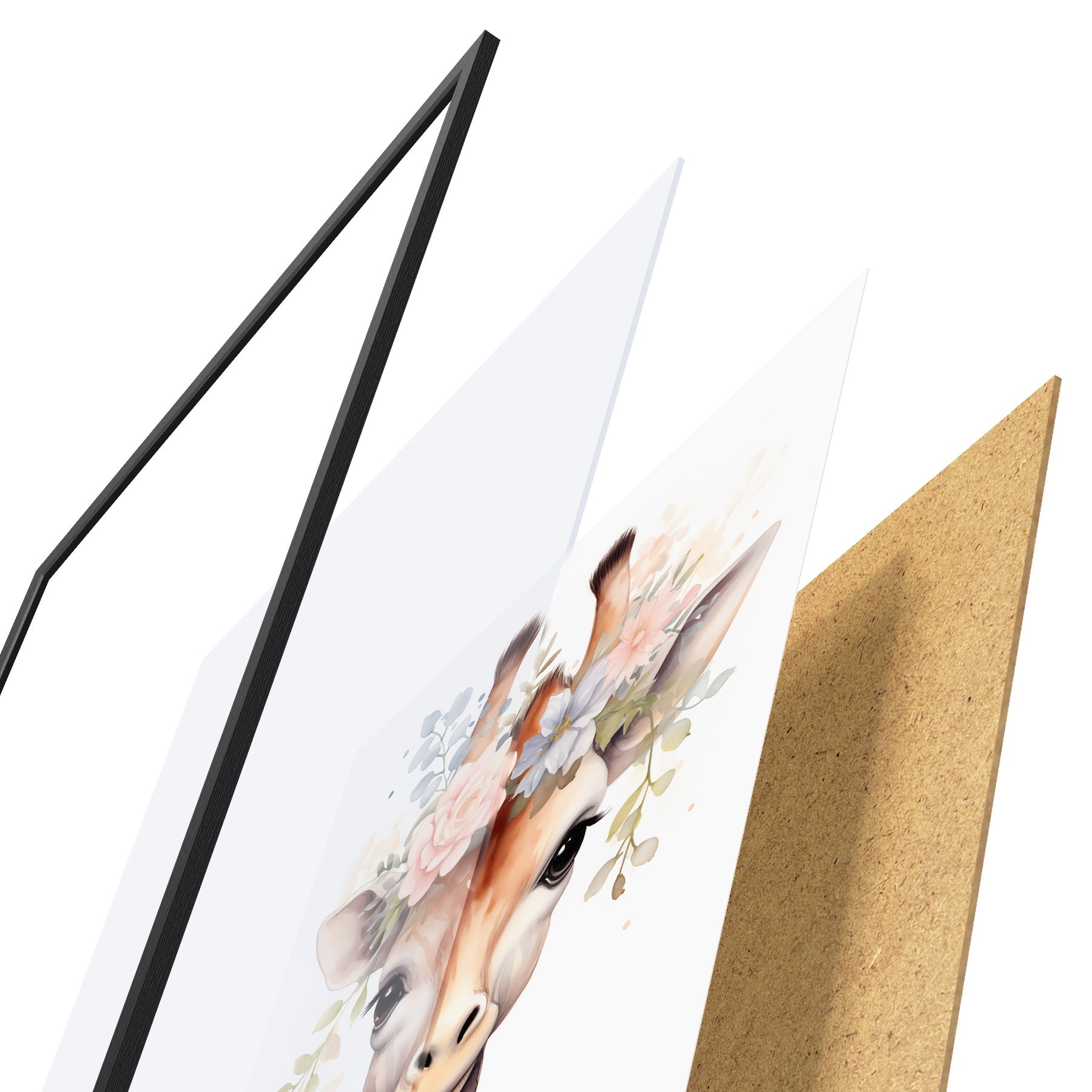 A poszter keretből, plexiből, nyomtatott képből és forgácslap hátlapból áll. A poszter a hátoldalon található rögzítőknek köszönhetően azonnal felakasztható a falra.