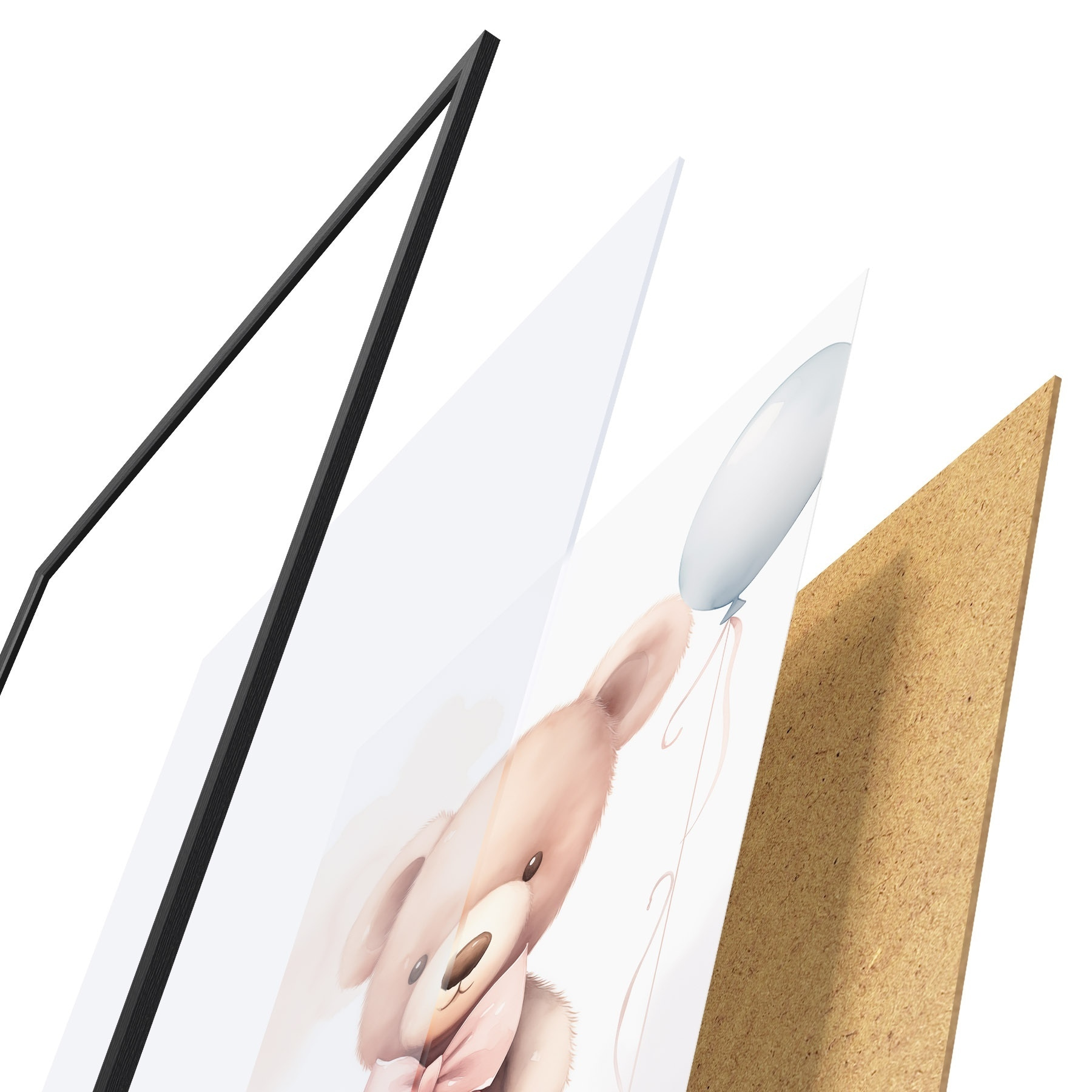 A poszter keretből, plexiből, nyomtatott képből és forgácslap hátlapból áll. A poszter a hátoldalon található rögzítőknek köszönhetően azonnal felakasztható a falra.