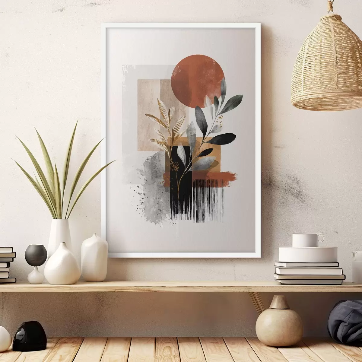Plakát a sziklán Geometria és levelek absztrakciója f46388