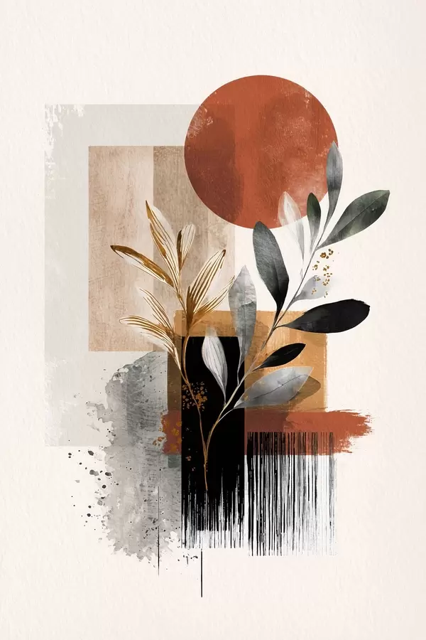 Plakát a sziklán Geometria és levelek absztrakciója f46388