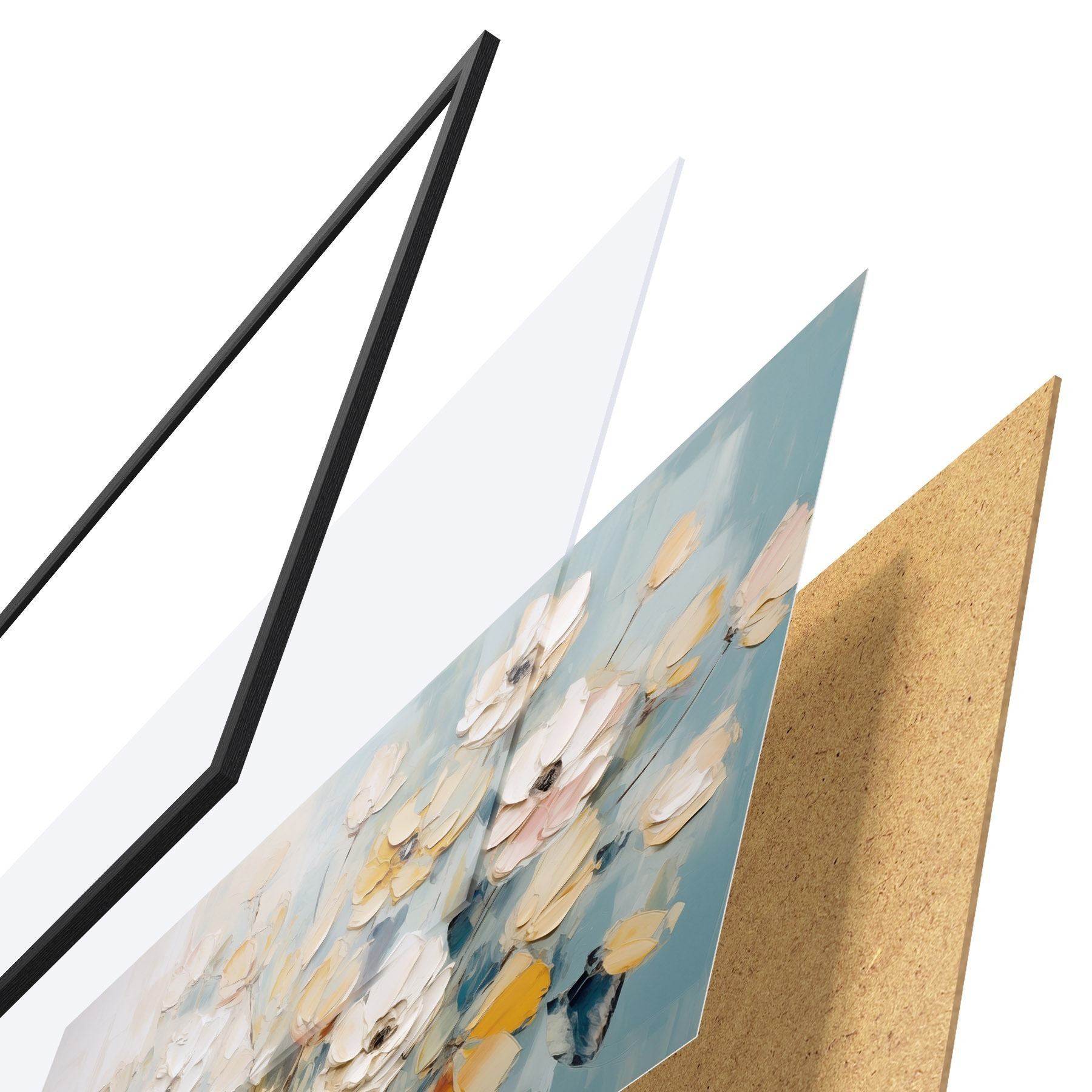 A poszter keretből, plexiből, nyomtatott képből és forgácslap hátlapból áll. A poszter a hátoldalon található rögzítőknek köszönhetően azonnal felakasztható a falra.