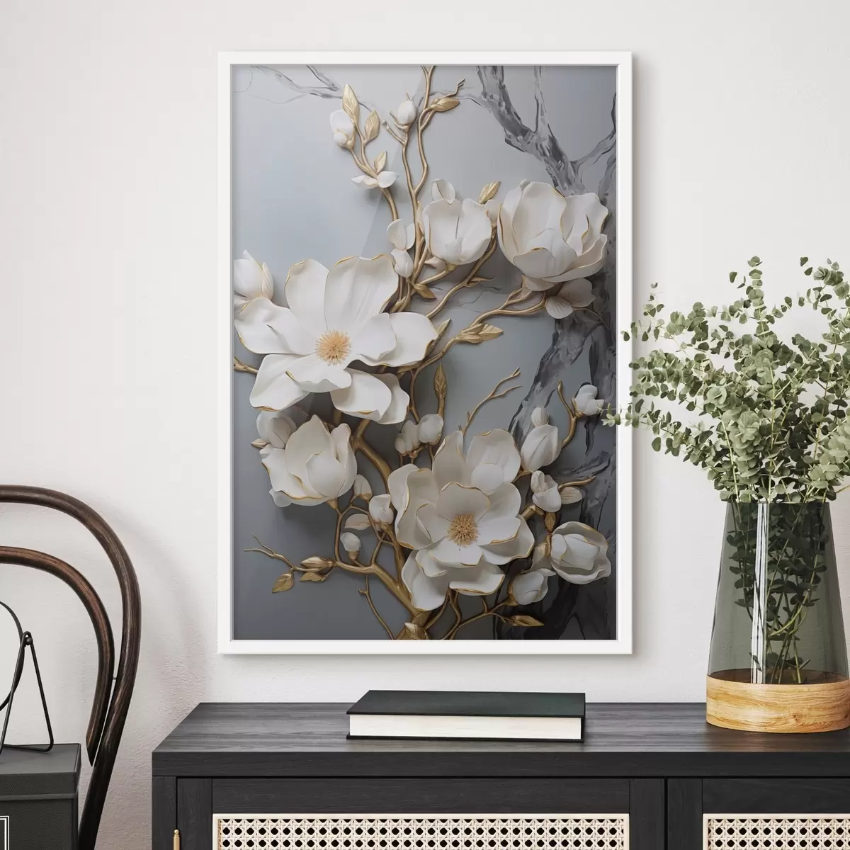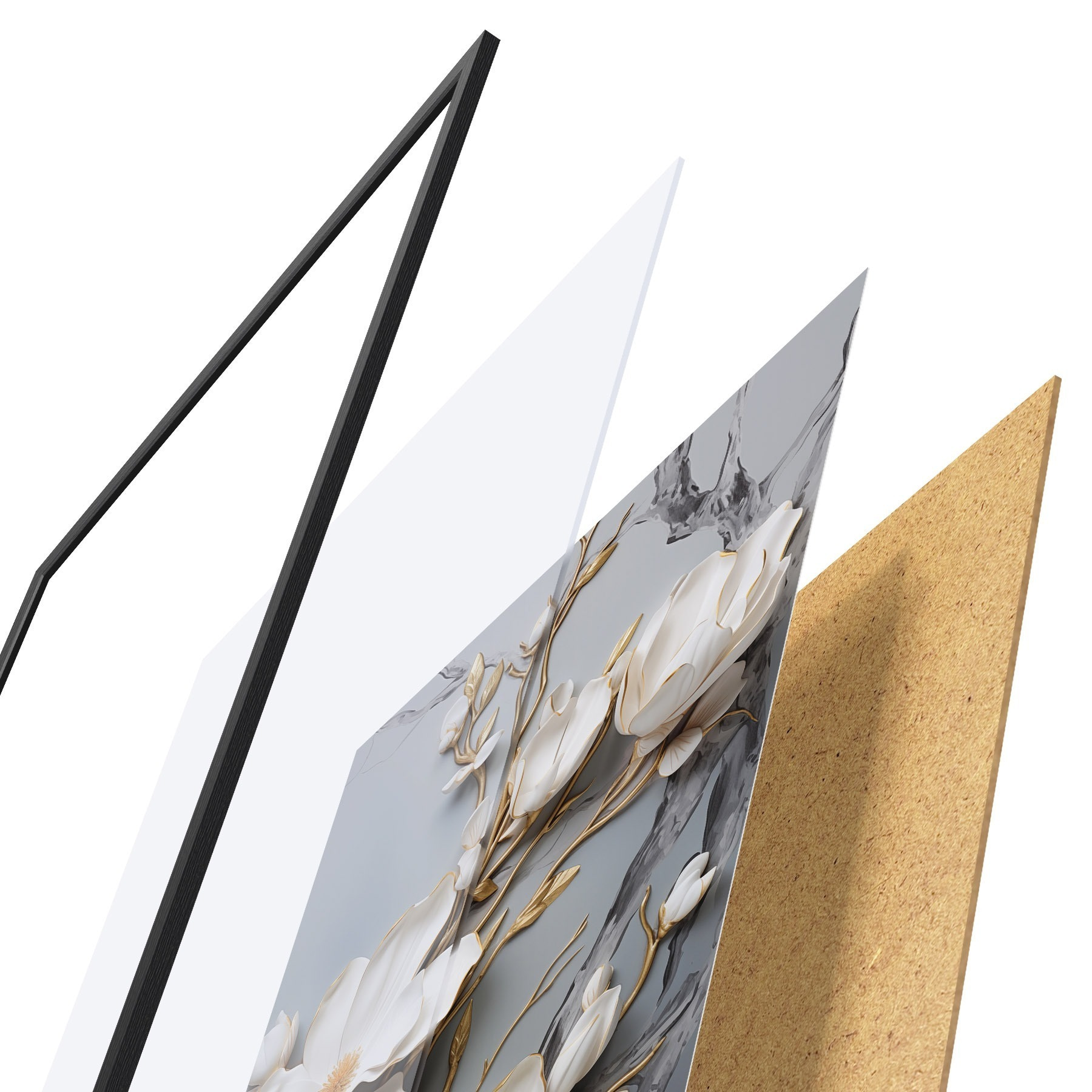 A poszter keretből, plexiből, nyomtatott képből és forgácslap hátlapból áll. A poszter a hátoldalon található rögzítőknek köszönhetően azonnal felakasztható a falra.