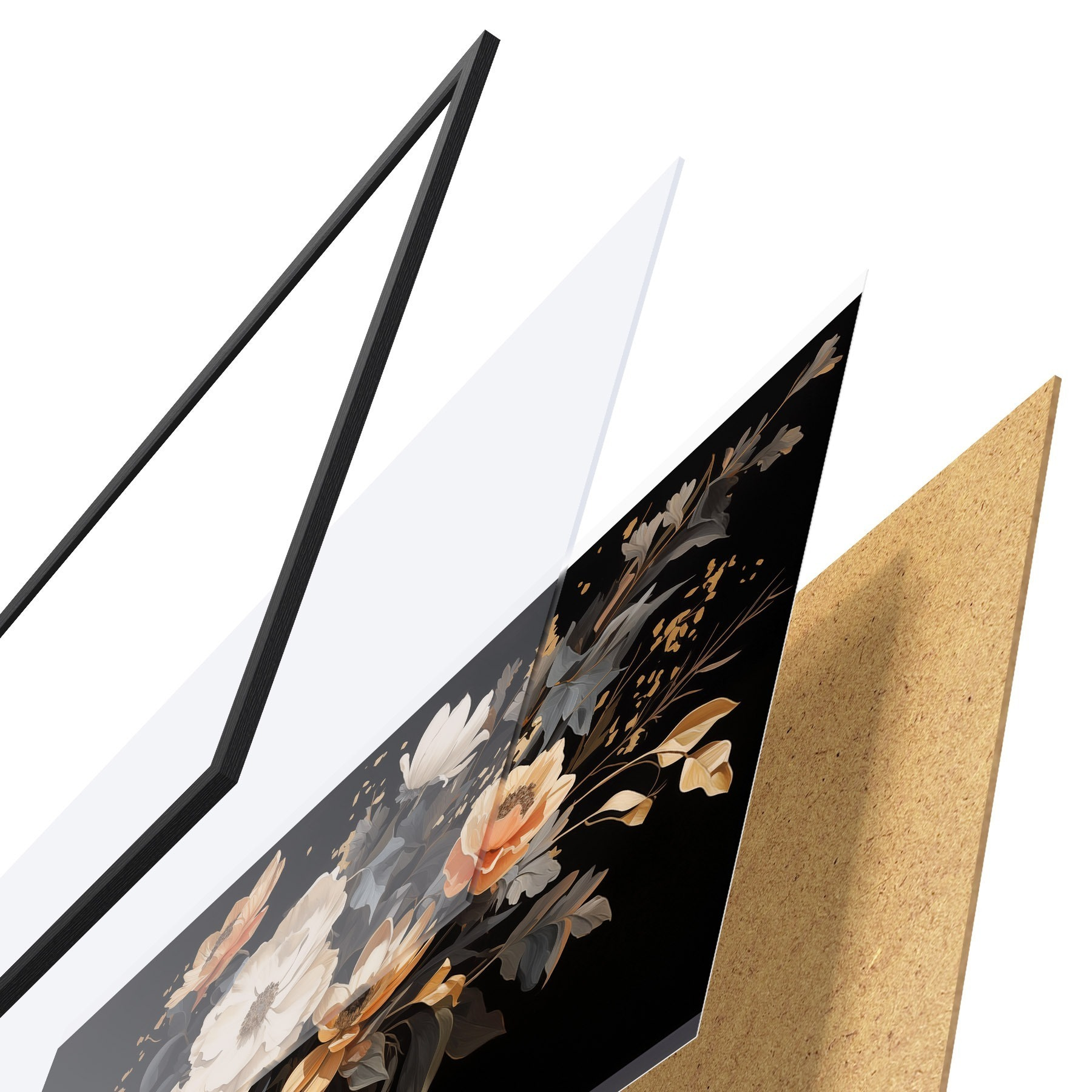 A poszter keretből, plexiből, nyomtatott képből és forgácslap hátlapból áll. A poszter a hátoldalon található rögzítőknek köszönhetően azonnal felakasztható a falra.