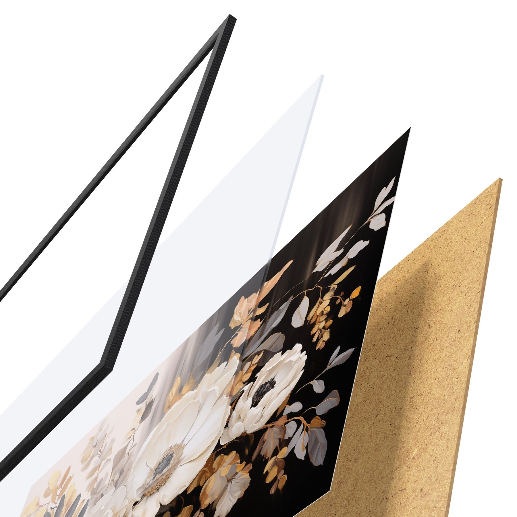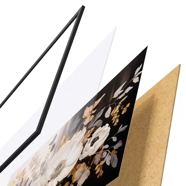 A poszter keretből, plexiből, nyomtatott képből és forgácslap hátlapból áll. A poszter a hátoldalon található rögzítőknek köszönhetően azonnal felakasztható a falra.