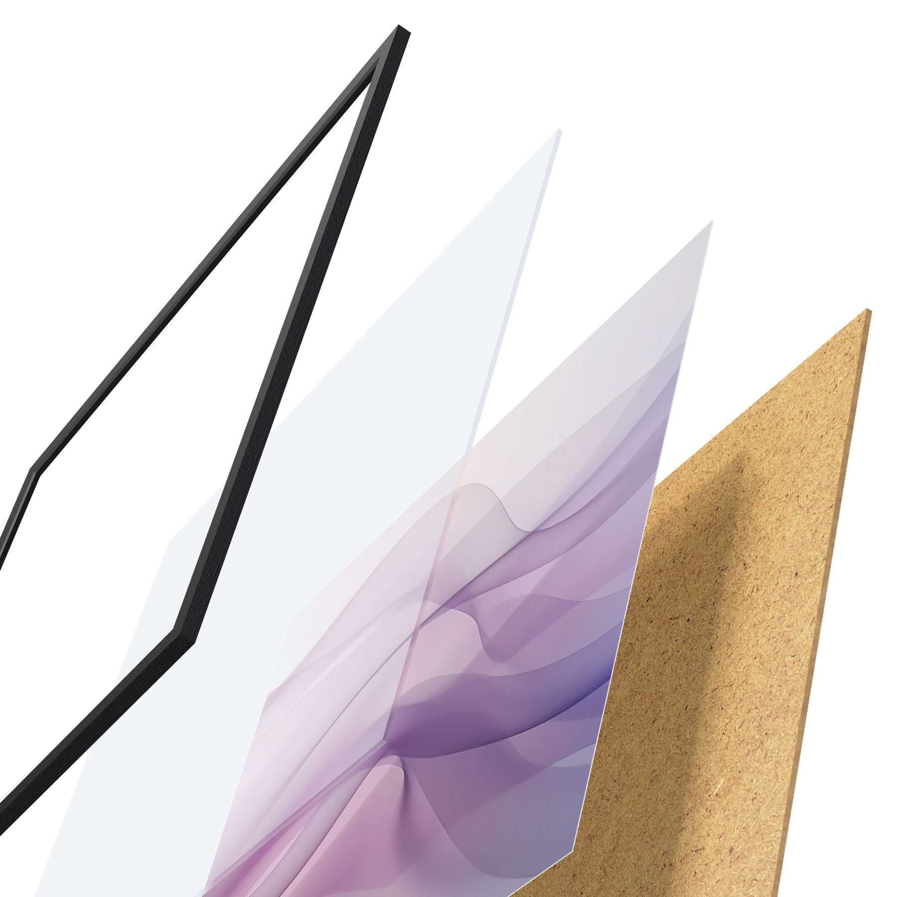 A poszter keretből, plexiből, nyomtatott képből és forgácslap hátlapból áll. A poszter a hátoldalon található rögzítőknek köszönhetően azonnal felakasztható a falra.