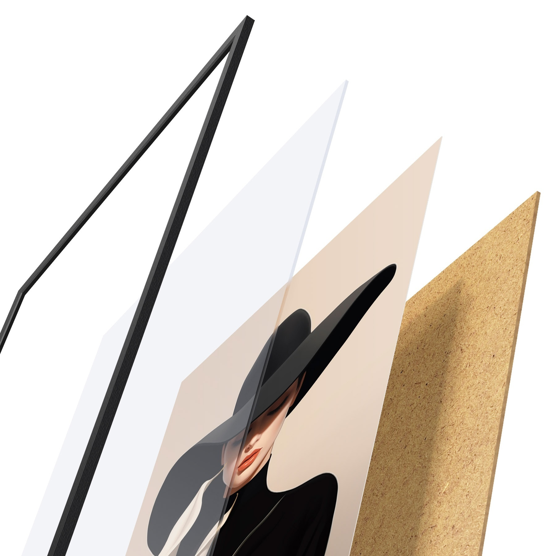 A poszter keretből, plexiből, nyomtatott képből és forgácslap hátlapból áll. A poszter a hátoldalon található rögzítőknek köszönhetően azonnal felakasztható a falra.