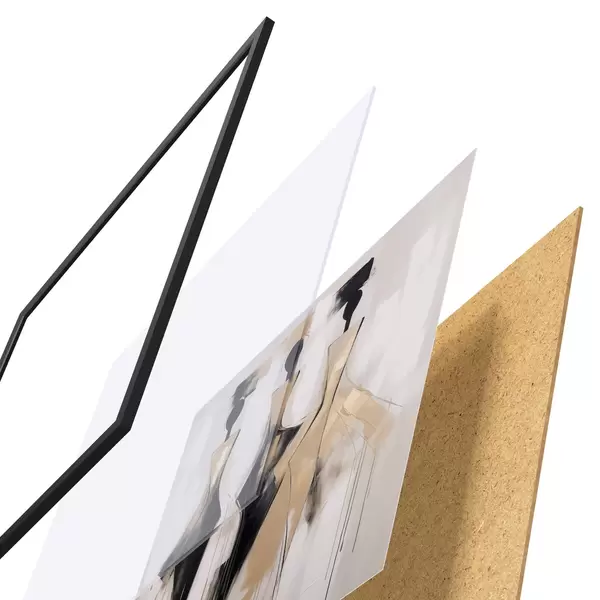 A poszter keretből, plexiből, nyomtatott képből és forgácslap hátlapból áll. A poszter a hátoldalon található rögzítőknek köszönhetően azonnal felakasztható a falra.