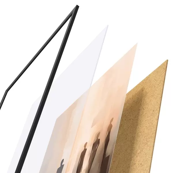 A poszter keretből, plexiből, nyomtatott képből és forgácslap hátlapból áll. A poszter a hátoldalon található rögzítőknek köszönhetően azonnal felakasztható a falra.