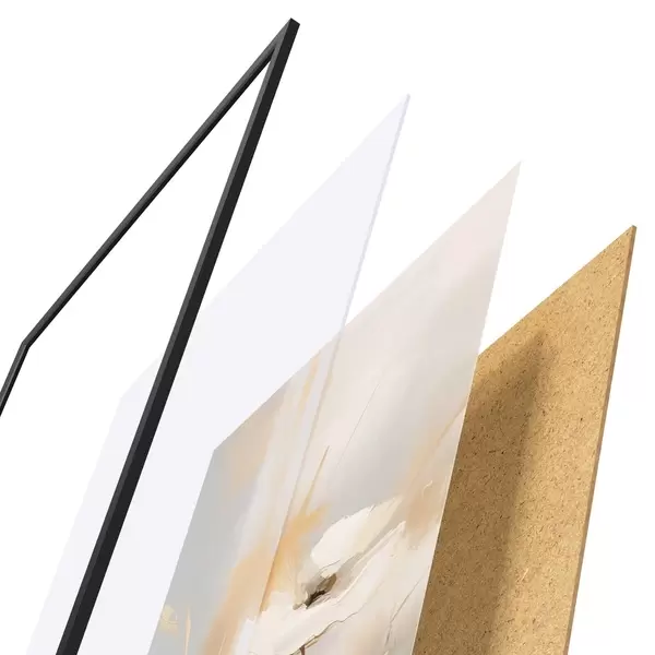 A poszter keretből, plexiből, nyomtatott képből és forgácslap hátlapból áll. A poszter a hátoldalon található rögzítőknek köszönhetően azonnal felakasztható a falra.