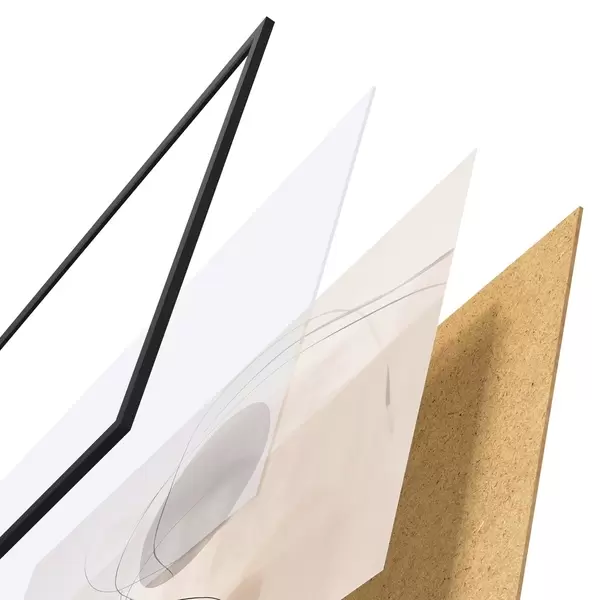 A poszter keretből, plexiből, nyomtatott képből és forgácslap hátlapból áll. A poszter a hátoldalon található rögzítőknek köszönhetően azonnal felakasztható a falra.
