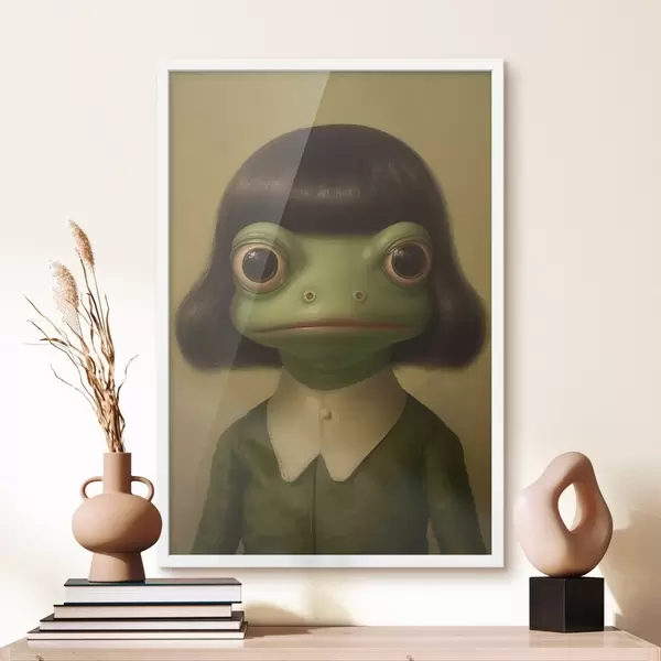 Plakát a sziklán Vintage stílusú lány béka f46458