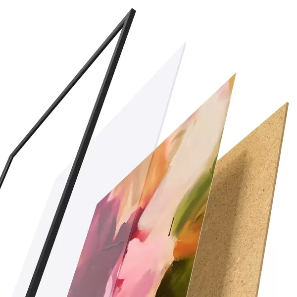 A poszter keretből, plexiből, nyomtatott képből és forgácslap hátlapból áll. A poszter a hátoldalon található rögzítőknek köszönhetően azonnal felakasztható a falra.