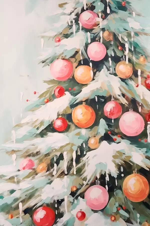 Poster Karácsonyfa hóval és rózsaszín gömbökkel Nr f46480