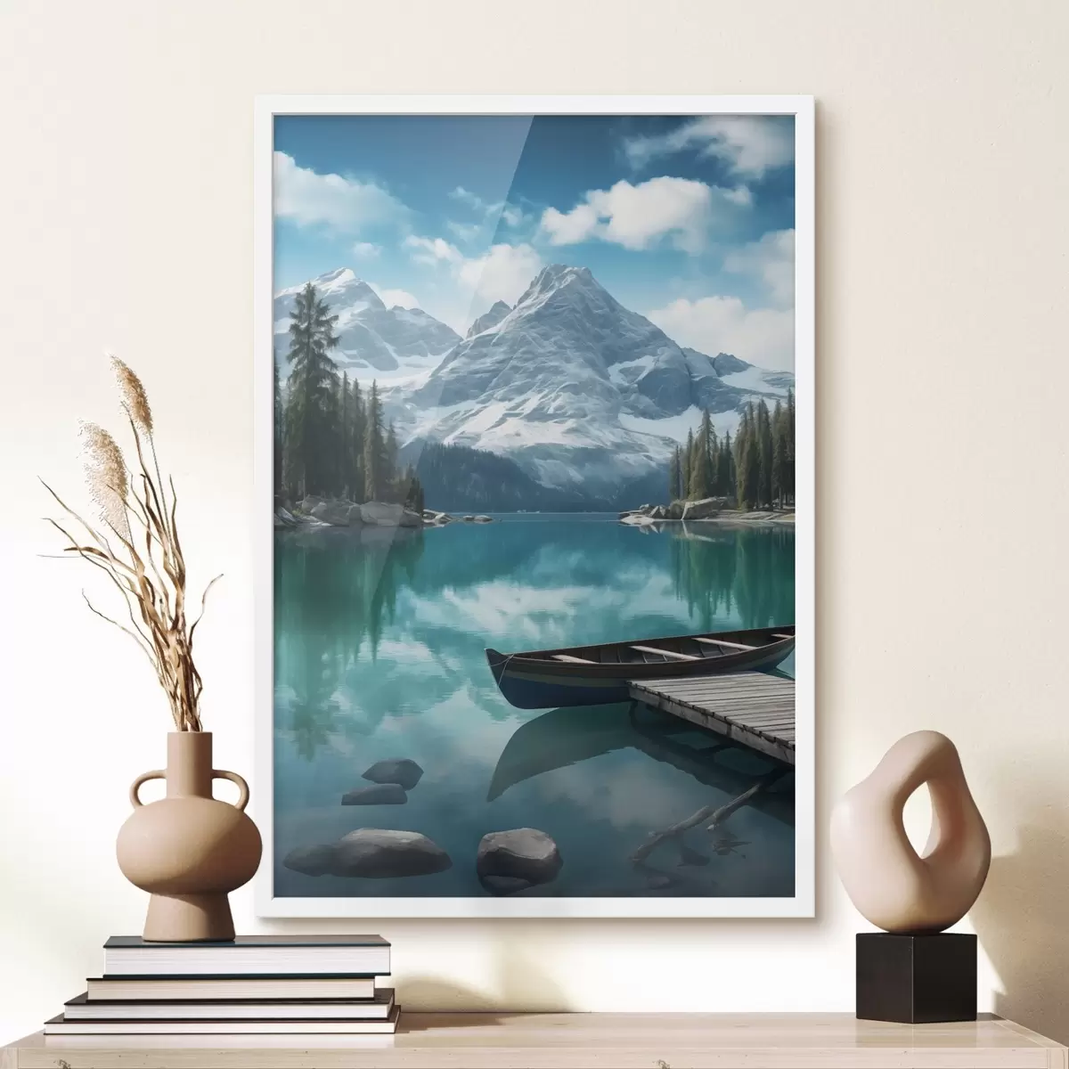 Poster Alpesi tó kenuval és havas csúcsokkal Nr f46481