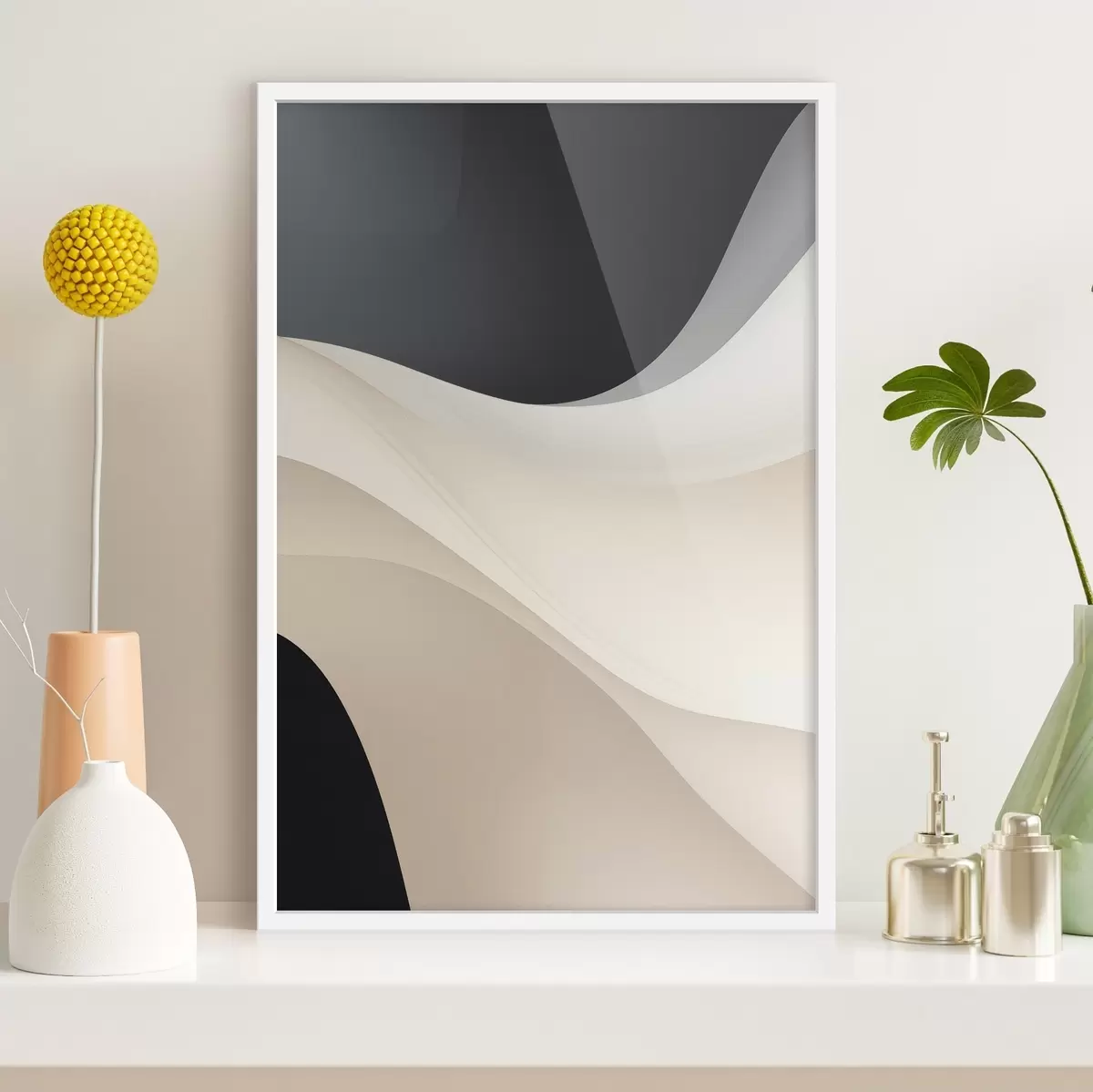 Plakát a sziklán Réteges, áramló görbék fekete, krém és szürkésbarna színben f46492