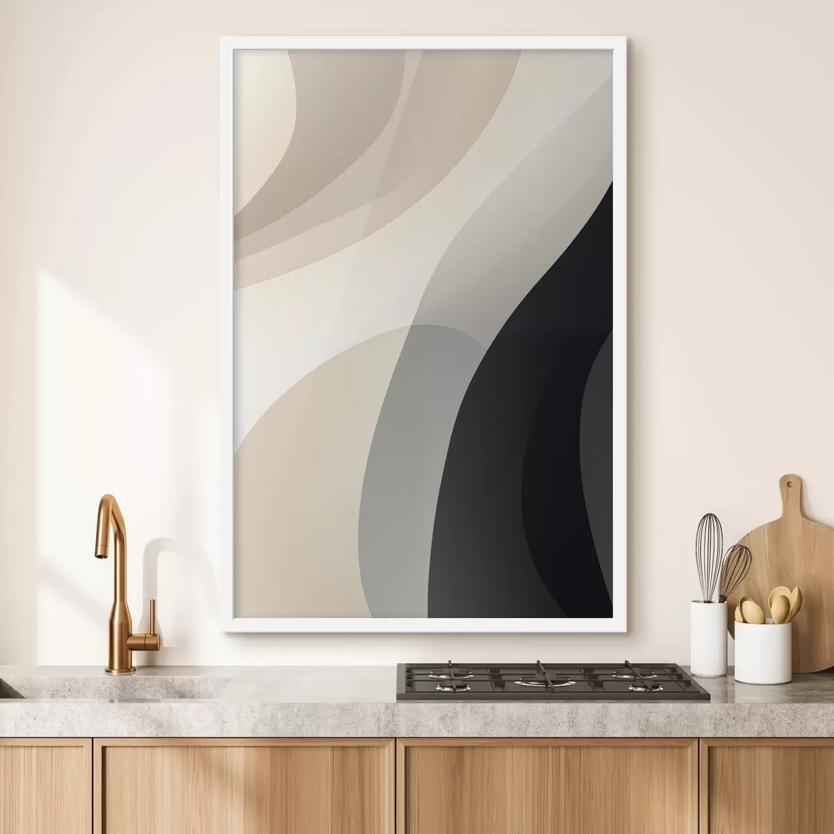 Poster Organikus hullámformák meleg bézs és szénfekete színben Nr f46494