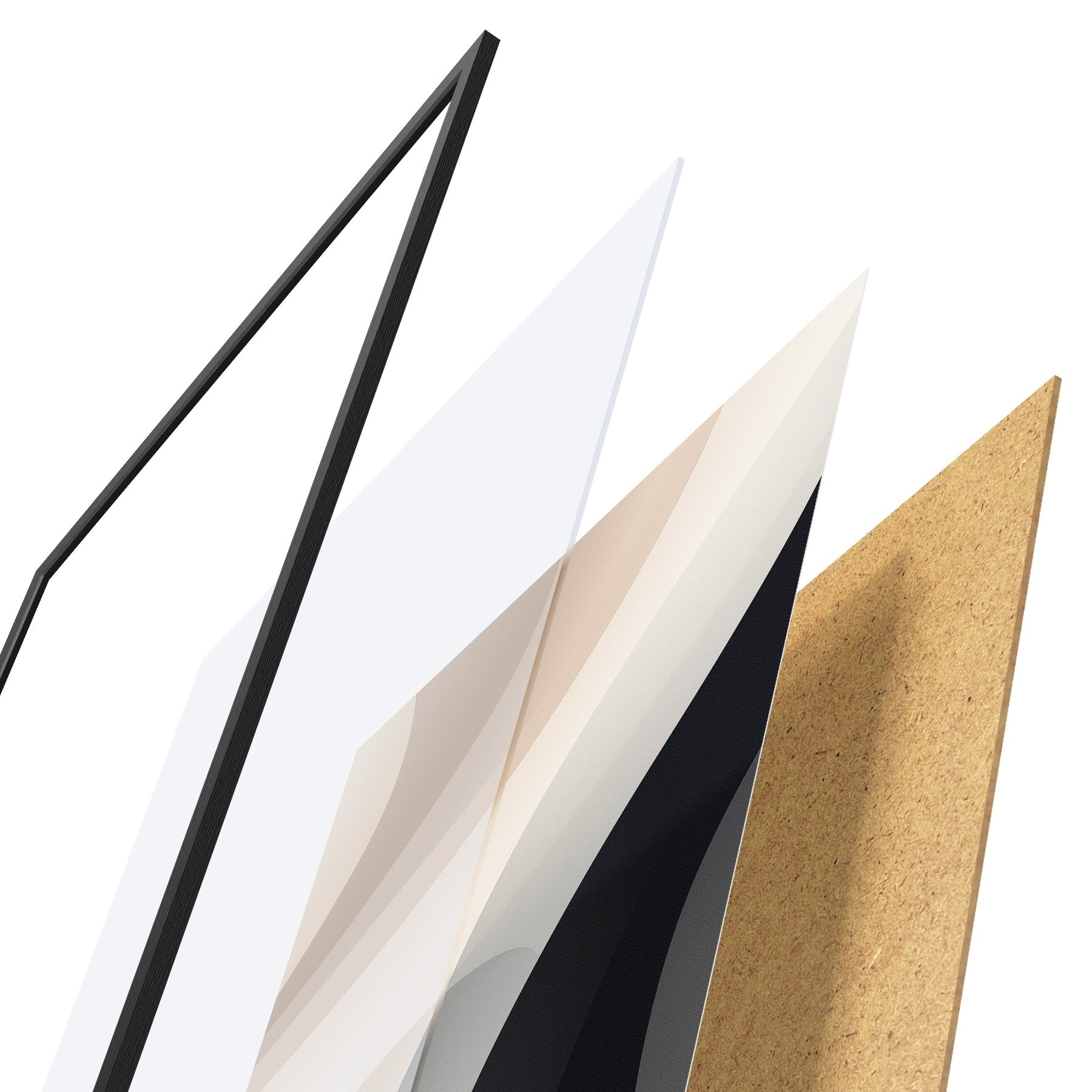 A poszter keretből, plexiből, nyomtatott képből és forgácslap hátlapból áll. A poszter a hátoldalon található rögzítőknek köszönhetően azonnal felakasztható a falra.