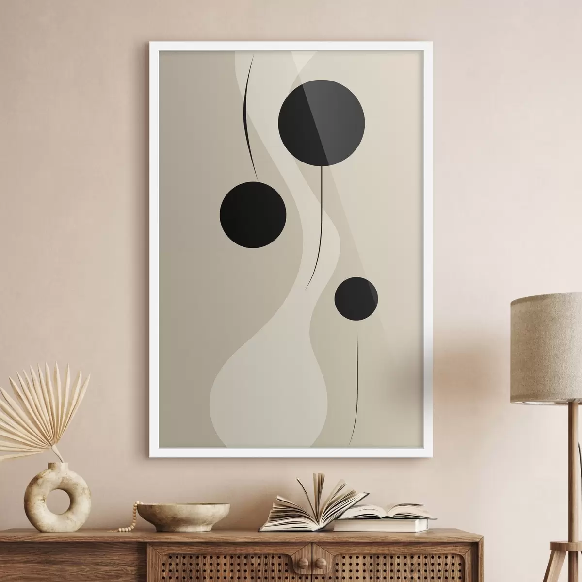 Poster Minimális körök bézs alapon, áramló vonalakkal kiemelve Nr f46496