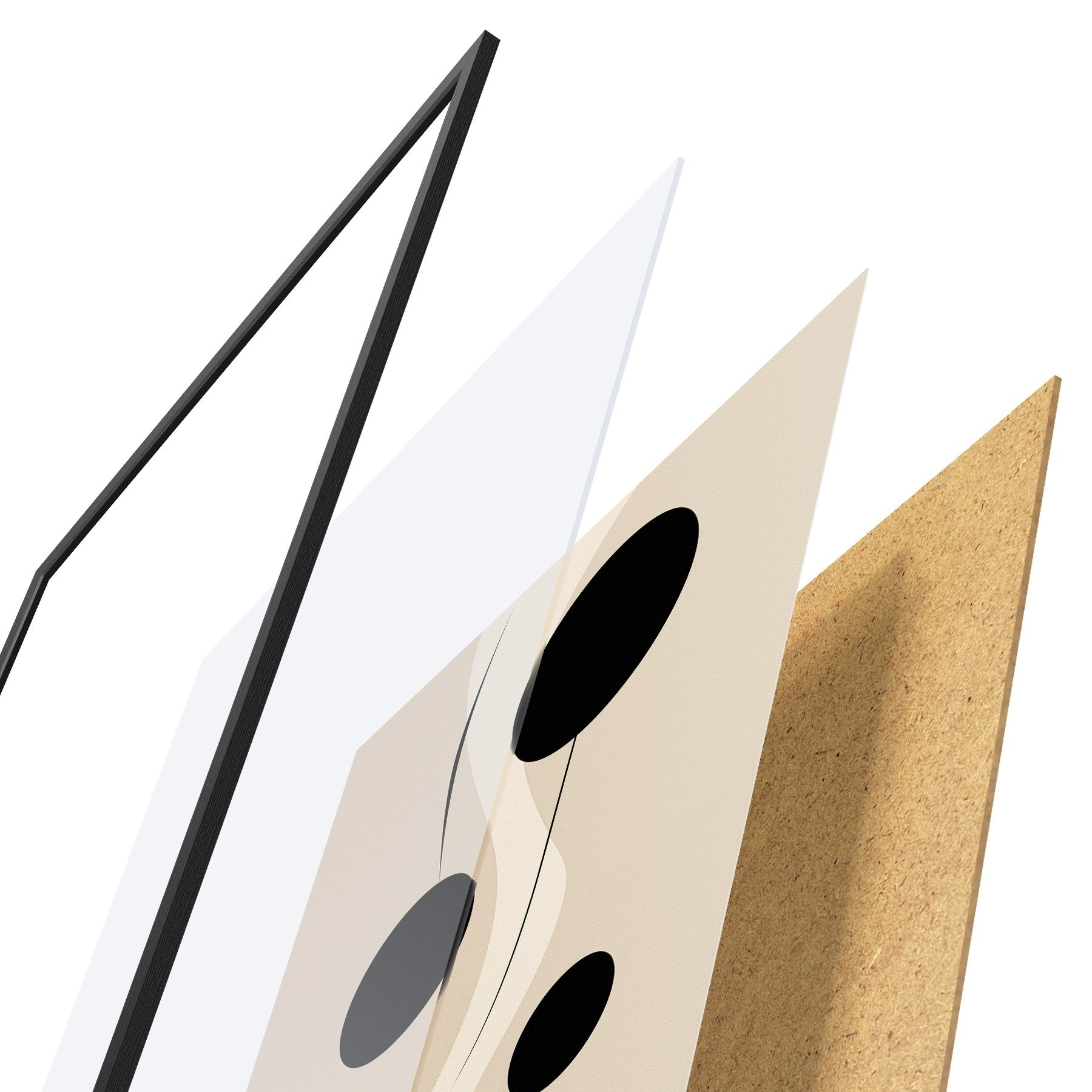 A poszter keretből, plexiből, nyomtatott képből és forgácslap hátlapból áll. A poszter a hátoldalon található rögzítőknek köszönhetően azonnal felakasztható a falra.