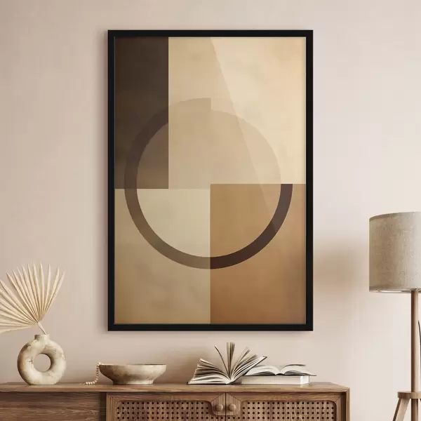 Poster Halvány négyzetek áttetsző gyűrűvel, meleg földszínekkel Nr f46498