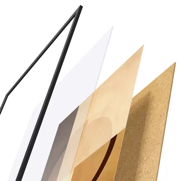 A poszter keretből, plexiből, nyomtatott képből és forgácslap hátlapból áll. A poszter a hátoldalon található rögzítőknek köszönhetően azonnal felakasztható a falra.
