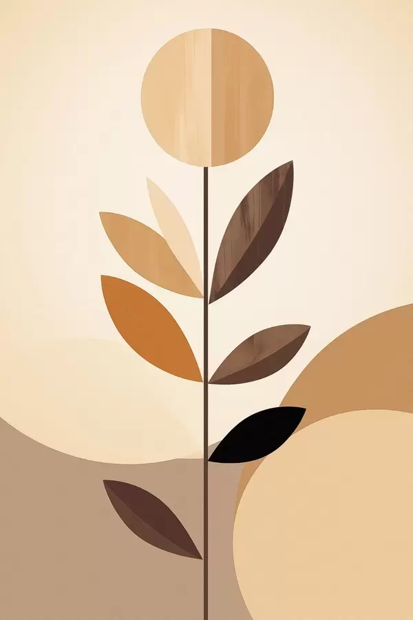 Poster Stilizált virág geometrikus levelekkel, meleg színekben Nr f46500