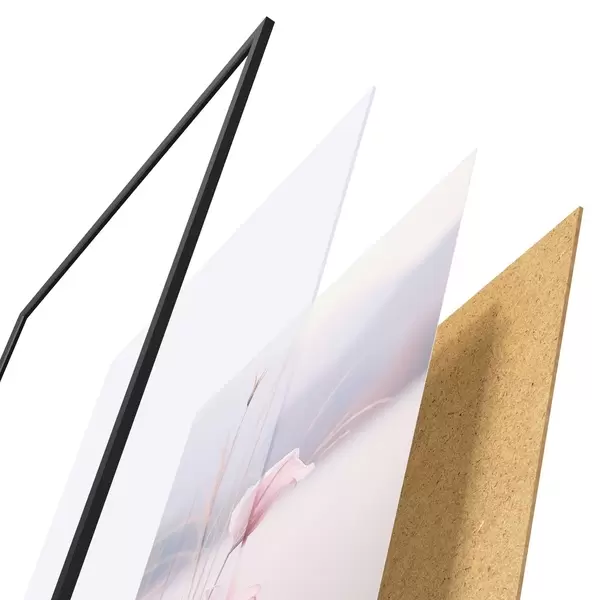 A poszter keretből, plexiből, nyomtatott képből és forgácslap hátlapból áll. A poszter a hátoldalon található rögzítőknek köszönhetően azonnal felakasztható a falra.