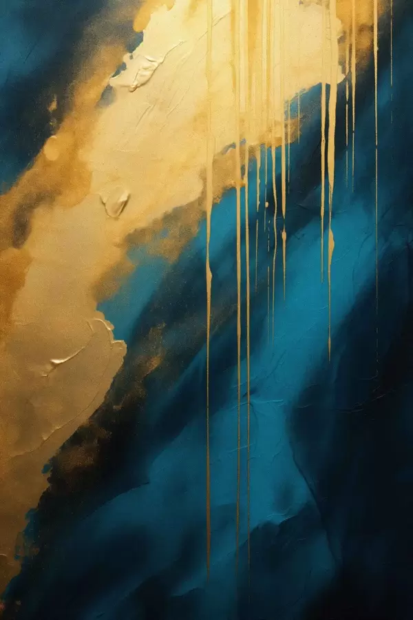Poster Zöldeskék és mélykék absztrakt, áramló meleg fénycsóvával Nr f46509