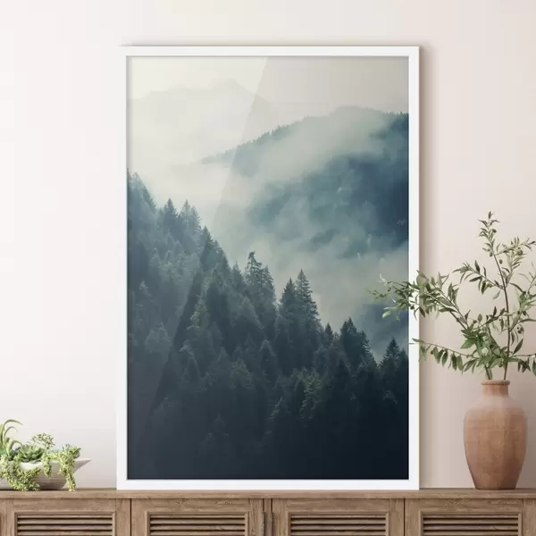 Poster Ködös hegygerincek és sötét tűlevelű erdő Nr f46518