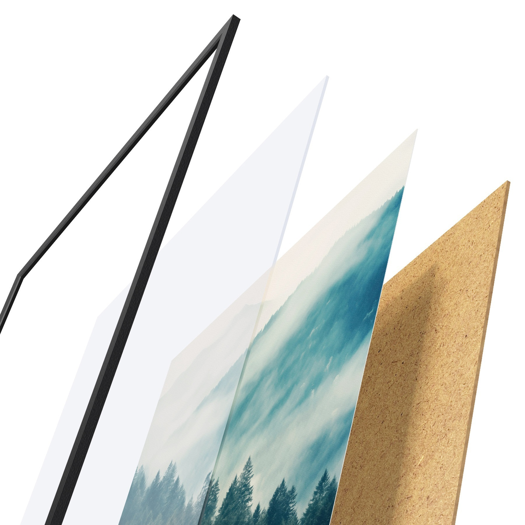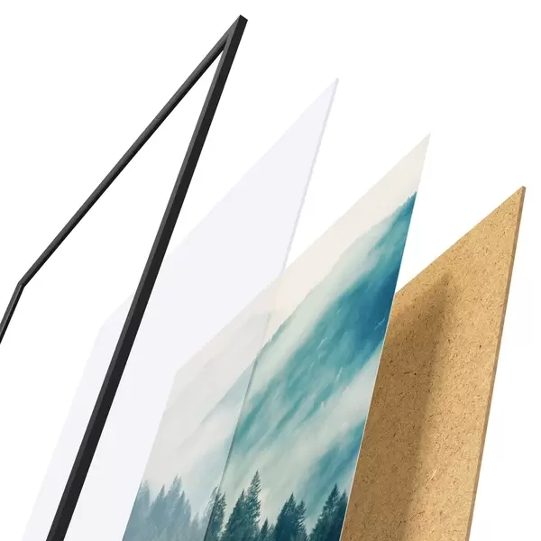 A poszter keretből, plexiből, nyomtatott képből és forgácslap hátlapból áll. A poszter a hátoldalon található rögzítőknek köszönhetően azonnal felakasztható a falra.