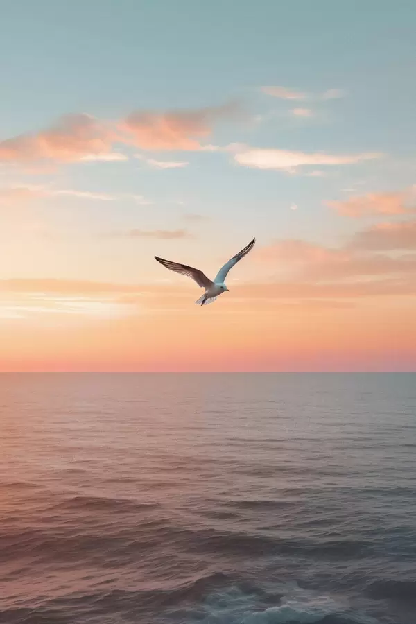 Poster Sirály a tenger felett, rózsaszín-barack színű naplementében Nr f46520