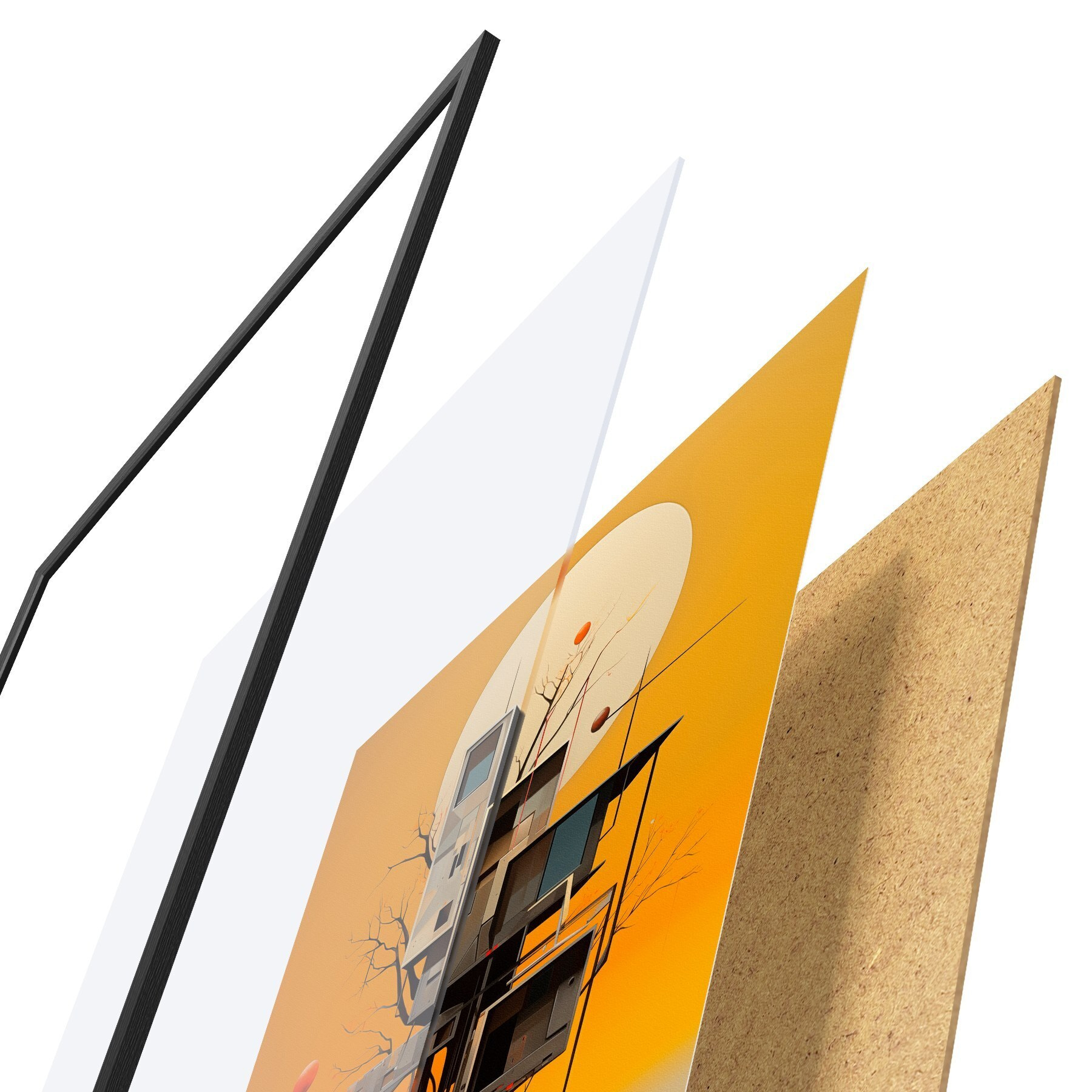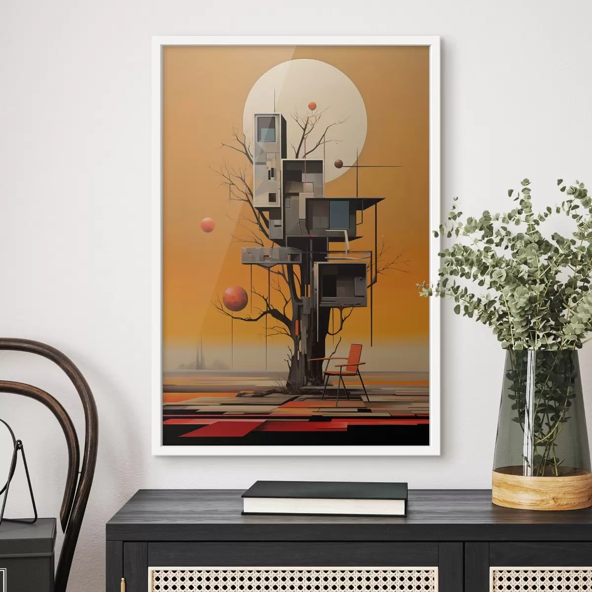 Poster Szürreális faház narancssárga háttér előtt Nr f46526